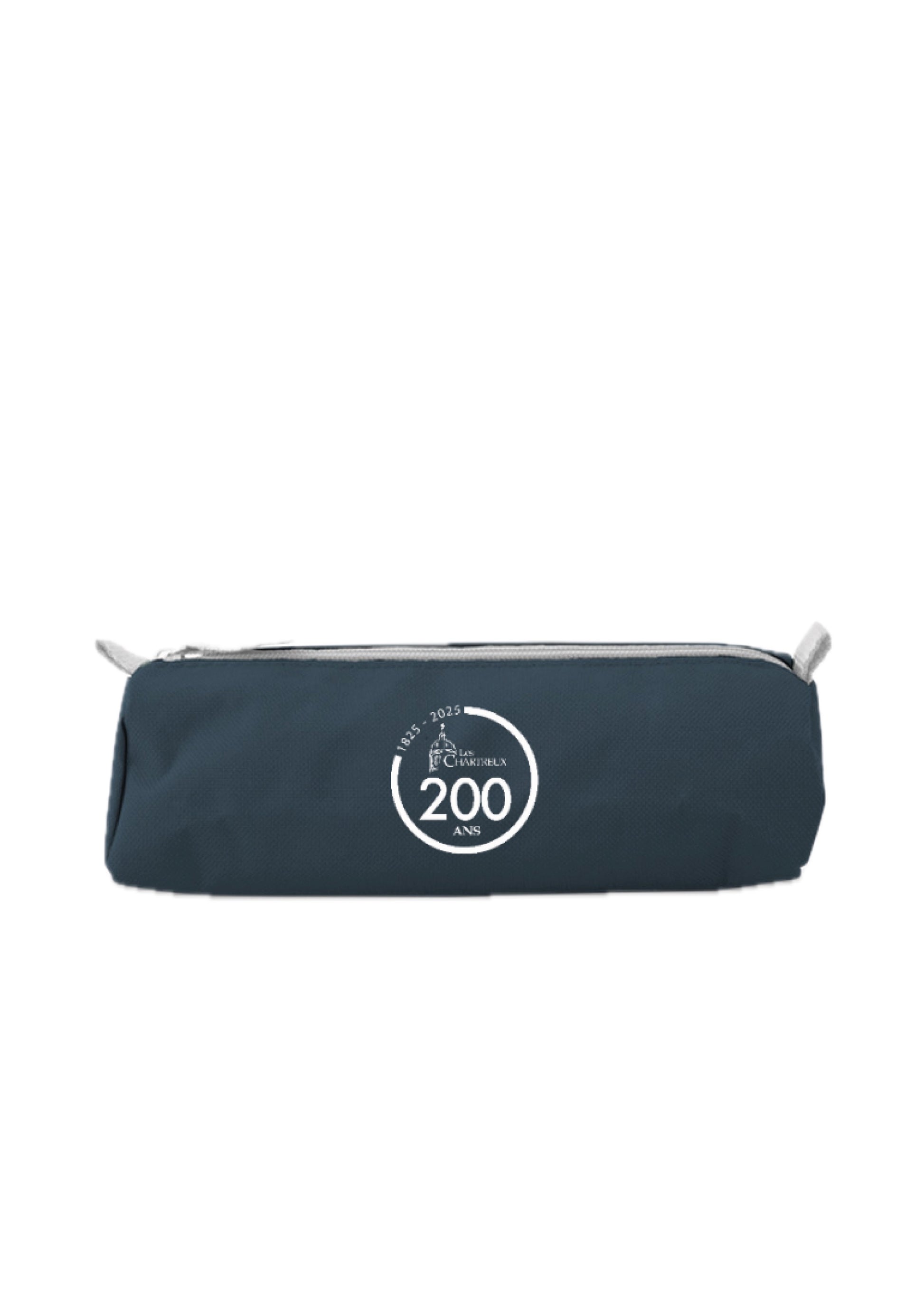 Trousse bleu marine en tissu imprimé du logo des 200 ans des Chartreux.